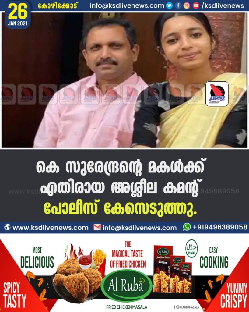 കെ സുരേന്ദ്രന്റെ മകൾക്ക് എതിരായ അശ്ലീല കമന്റ് പൊലീസ് കേസെടുത്തു .
