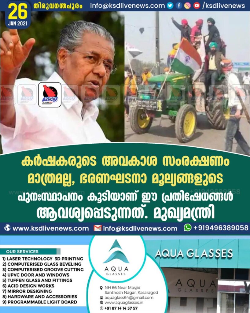 കർഷകരുടെ അവകാശ സംരക്ഷണം മാത്രമല്ല , ഭരണഘടനാ മൂല്യങ്ങളുടെ പുനഃസ്ഥാപനം കൂടിയാണ് ഈ പ്രതിഷേധങ്ങൾ ആവശ്യപ്പെടുന്നത് . മുഖ്യമന്ത്രി