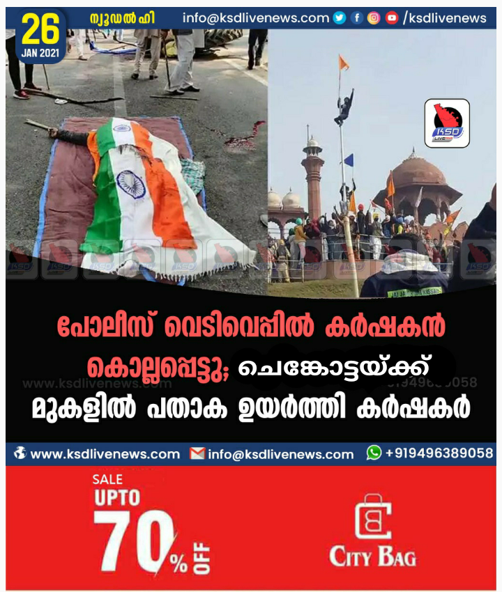 പോലീസ് വെടിവെപ്പിൽ കർഷകൻ കൊല്ലപ്പെട്ടു ; ചെങ്കോട്ടയ്ക്ക് മുകളിൽ പതാക ഉയർത്തി കർഷകർ