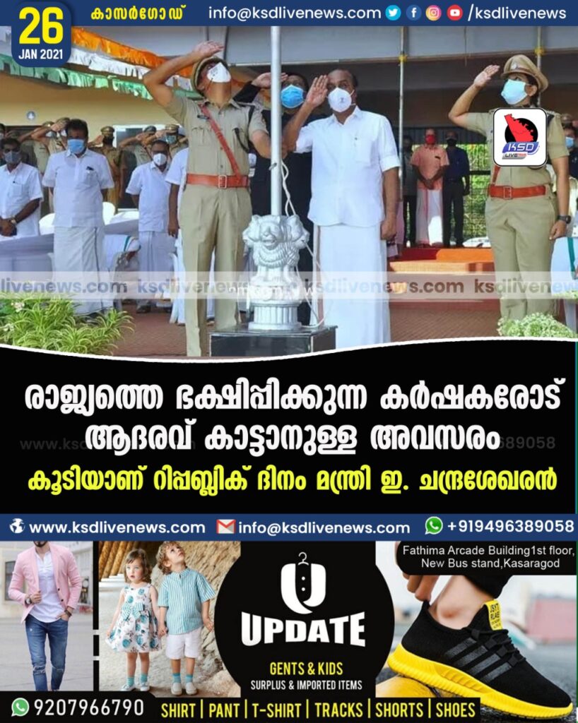 രാജ്യത്തെ ഭക്ഷിപ്പിക്കുന്ന കര്ഷകരോട് ആദരവ് കാട്ടാനുള്ള അവസരം കൂടിയാണ് റിപ്പബ്ലിക് ദിനം-മന്ത്രി ഇ. ചന്ദ്രശേഖരന്