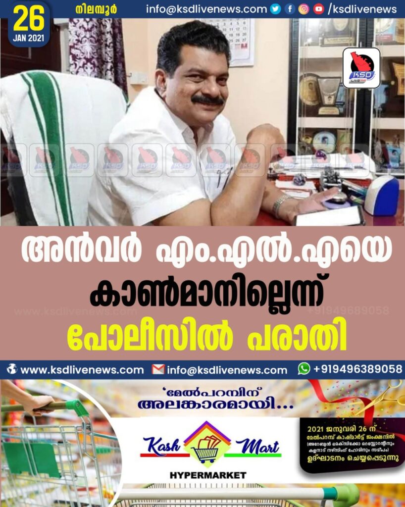 അൻവർ എം.എൽ.എയെ കാൺമാനില്ലെന്ന് പോലീസിൽ പരാതി