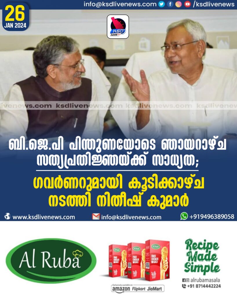 ജനുവരി 28-ന് നിതീഷ് കുമാര് നടത്താനിരുന്ന പരിപാടികളെല്ലാം മാറ്റിവെച്ചിട്ടുണ്ട്. ഉപമുഖ്യമന്ത്രിമാരായി രണ്ട് ബി.ജെ.പി. നേതാക്കളും സത്യപ്രതിജ്ഞ ചെയ്യുമെന്നും റിപ്പോര്ട്ടുകളുണ്ട്. അടഞ്ഞവാതിലുകള് തുറക്കപ്പെടുമെന്നും രാഷ്ട്രീയം സാധ്യതകളുടെ കലയാണെന്നും സുശീല്കുമാര് മോദി നടത്തിയ പ്രസ്താവന അഭ്യൂഹങ്ങള്ക്ക് ബലം നല്കുന്നതാണ്.