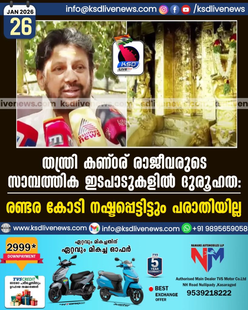 തന്ത്രി കണ്ഠര് രാജീവരുടെ സാമ്പത്തിക ഇടപാടുകളില് ദുരൂഹത: രണ്ടര കോടി നഷ്ടപ്പെട്ടിട്ടും പരാതിയില്ല