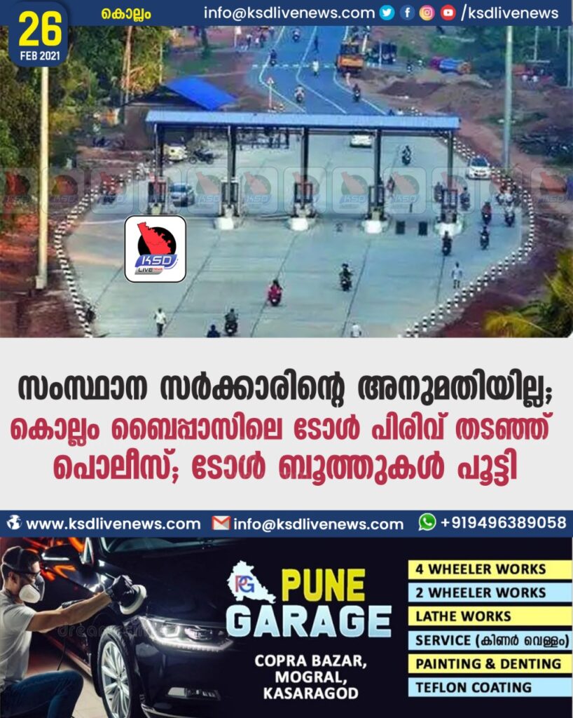 സംസ്ഥാന സർക്കാരിന്റെ അനുമതിയില്ല ; കൊല്ലം ബൈപ്പാസിലെ ടോൾ പിരിവ് തടഞ്ഞ് പൊലീസ് ; ടോൾ ബൂത്തുകൾ പൂട്ടി