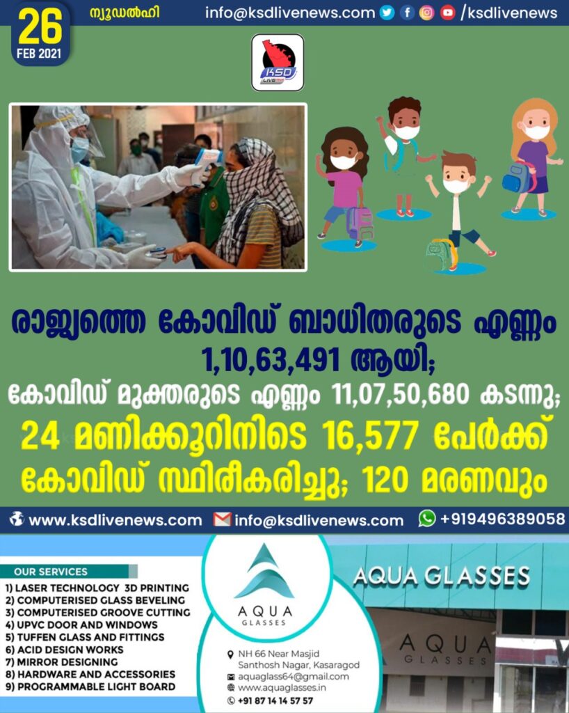 24 മണിക്കൂറിനിടെ 16,577 പേർക്ക് കോവിഡ് സ്ഥിരീകരിച്ചു ; 120 മരണവും
