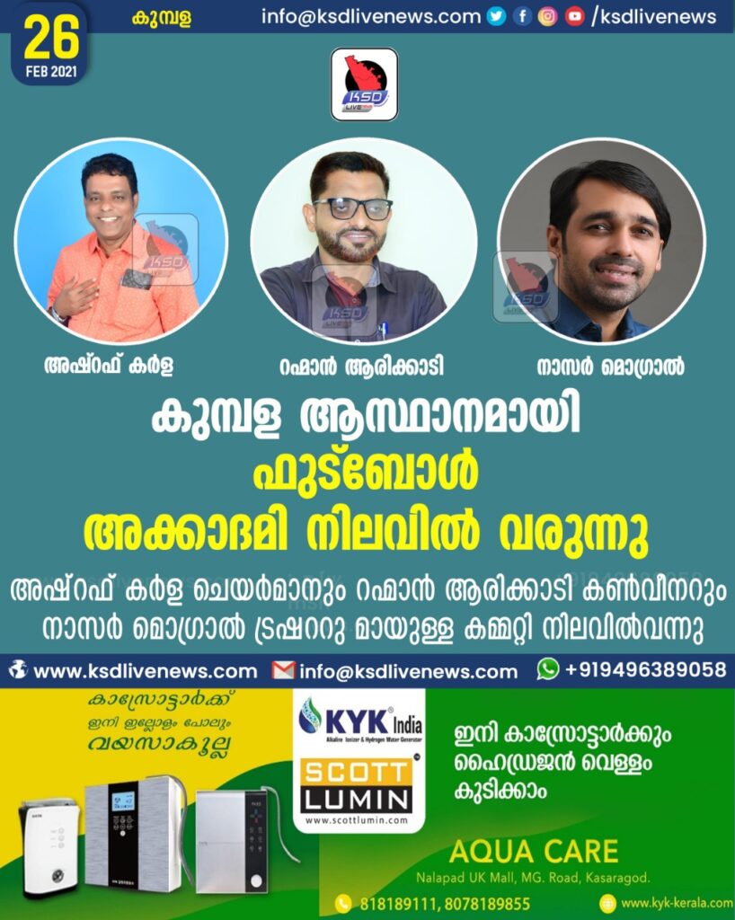 കുമ്പള ആസ്ഥാനമായി ഫുട്ബോൾ അക്കാദമി നിലവിൽ വരുന്നു.