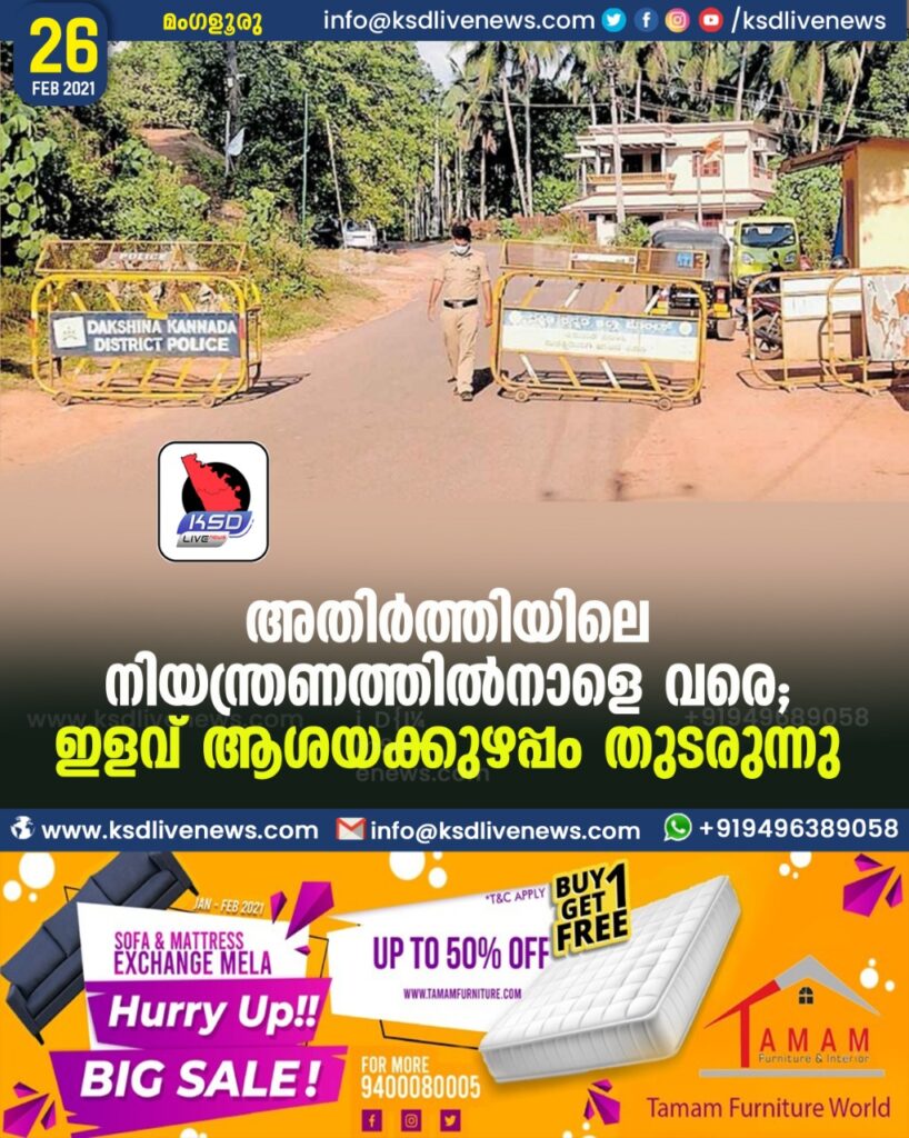 മംഗളൂരു ∙ കോവിഡ് നിയന്ത്രണങ്ങളുടെ പേരിൽ കേരളത്തിൽ നിന്നുള്ള യാത്രക്കാർക്കു ദക്ഷിണ കന്നഡ ജില്ലാ ഭരണകൂടം ഏർപ്പെടുത്തിയ നിയന്ത്രണങ്ങളിൽ ആശയക്കുഴപ്പം തുടരുന്നു. നിയന്ത്രണങ്ങളിൽ നാളെ വരെ താൽക്കാലിക ഇളവ് വരുത്തിയതായി ജില്ലാ ഡപ്യൂട്ടി കമ്മിഷണർ (കലക്ടർ) ഡോ.കെ.വി.രാജേന്ദ്ര വ്യക്തമാക്കി. 5 പാതകളിൽ കൂടി മാത്രമാണു നിലവിൽ കേരളത്തിൽ നിന്നു ജില്ലയിലേക്ക് പ്രവേശനം അനുവദിക്കുന്നത്. ആർക്കെങ്കിലും ഏതെങ്കിലും വിധത്തിൽ ബുദ്ധിമുട്ട് ഉണ്ടാക്കണമെന്ന് ആഗ്രഹിക്കുന്നില്ല. വിദ്യാഭ്യാസ സ്ഥാപനങ്ങൾ, സ്‌കൂളുകൾ, മറ്റു സ്ഥാപനങ്ങൾ എന്നിവ കേന്ദ്രീകരിച്ച് കോവിഡ് പരിശോധനാ ക്യാംപുകൾ സംഘടിപ്പിച്ച് ആളുകളുടെ പ്രയാസങ്ങൾ ലഘൂകരിക്കാൻ ശ്രമിക്കും.