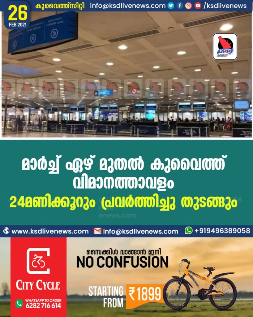 മാർച്ച് ഏഴ് മുതൽ കുവൈത്ത് വിമാനത്താവളം 24 മണിക്കൂറും പ്രവർത്തിച്ചു തുടങ്ങും