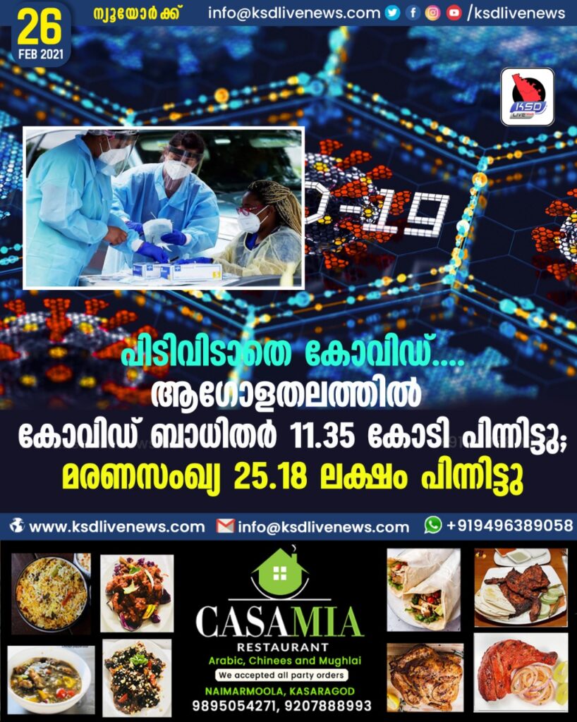ആഗോളതലത്തിൽ കോവിഡ് ബാധിതർ 11.35 കോടി; മരണസംഖ്യ 25.18 ലക്ഷം പിന്നിട്ടു