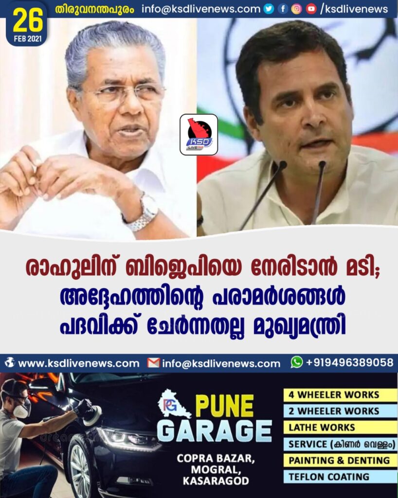 രാഹുലിന് ബിജെപിയെ നേരിടാന്‍ മടി; അദ്ദേഹത്തിന്റെ പരാമര്‍ശങ്ങള്‍ പദവിക്ക് ചേര്‍ന്നതല്ല – മുഖ്യമന്ത്രി