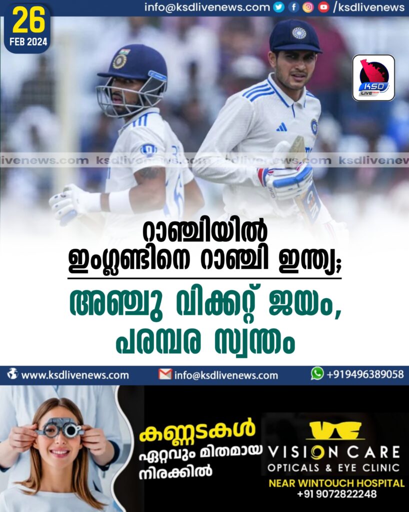 റാഞ്ചിയില് ഇംഗ്ലണ്ടിനെ റാഞ്ചി ഇന്ത്യ; അഞ്ചുവിക്കറ്റ് ജയം, പരമ്പര സ്വന്തം