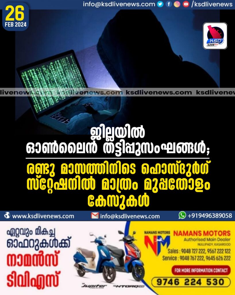 ജില്ലയിൽ ഓൺലൈൻ തട്ടിപ്പുസംഘങ്ങൾ; രണ്ടു മാസത്തിനിടെ ഹൊസ്ദുർഗ് സ്റ്റേഷനിൽ മാത്രം മുപ്പതോളം കേസുകൾ