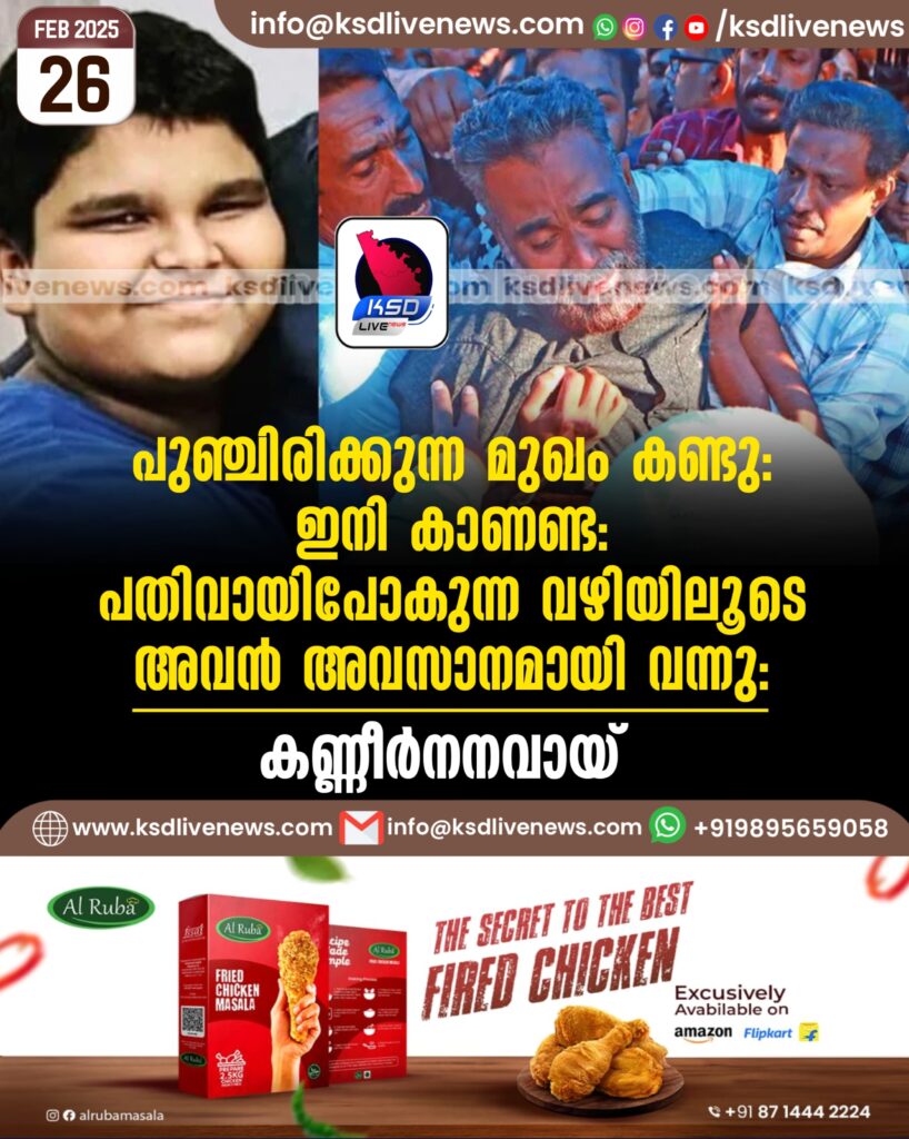 പുഞ്ചിരിക്കുന്ന മുഖം കണ്ടു: ഇനി കാണണ്ട: പതിവായിപോകുന്ന വഴിയിലൂടെ അവൻ അവസാനമായി വന്നു; കണ്ണീർനനവായ്