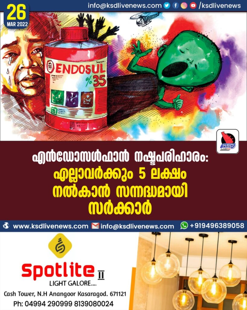 എൻഡോസൾഫാൻ നഷ്ടപരിഹാരം: എല്ലാവർക്കും 5 ലക്ഷം നൽകാൻ സന്നദ്ധമായി സർക്കാർ