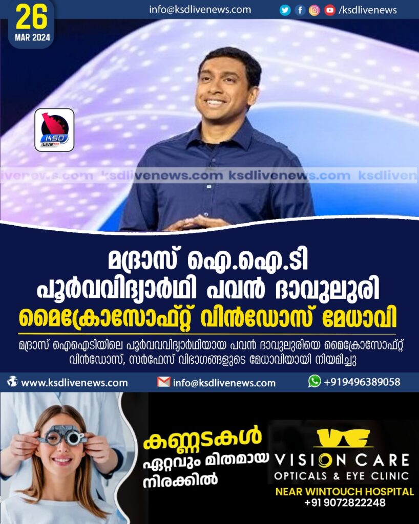 മദ്രാസ് ഐഐടി പൂര്വവിദ്യാര്ഥി പവന് ദാവുലുരി മൈക്രോസോഫ്റ്റ് വിന്ഡോസ് മേധാവി