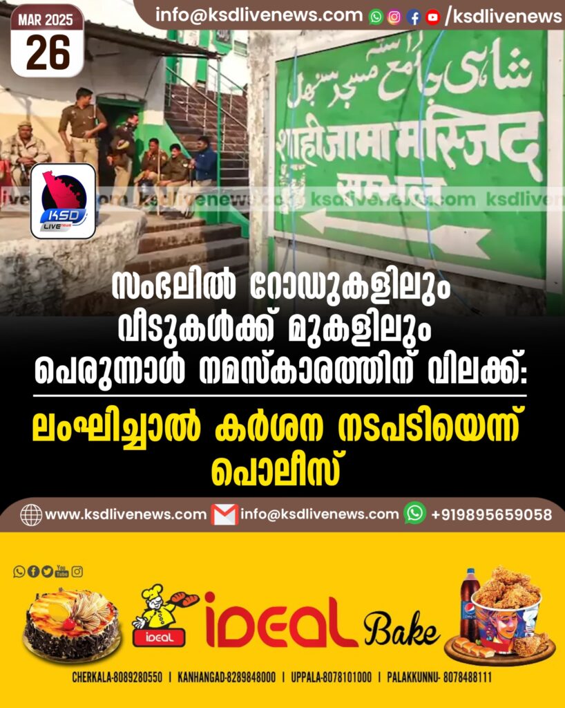 സംഭലിൽ റോഡുകളിലും വീടുകൾക്ക് മുകളിലും ‌പെരുന്നാൾ നമസ്കാരത്തിന് വിലക്ക്; ലംഘിച്ചാൽ കർശന നടപടിയെന്ന് പൊലീസ്