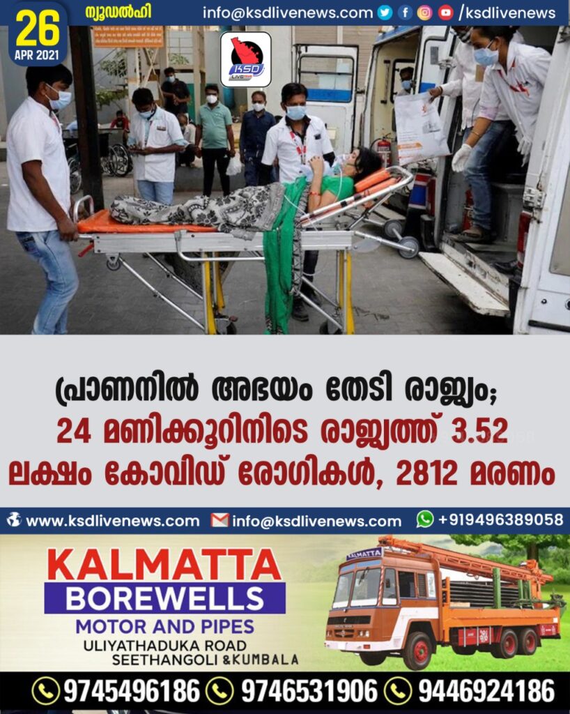 പ്രാണനിൽ അഭയം തേടി രാജ്യം ; 24 മണിക്കൂറിനിടെ രാജ്യത്ത് 3.52 ലക്ഷം കോവിഡ് രോഗികള്, 2812 മരണം