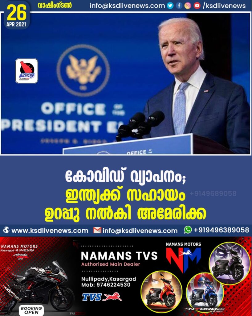 കോവിഡ് വ്യാപനം: ഇന്ത്യക്ക് സഹായം ഉറപ്പു നല്‍കി അമേരിക്ക