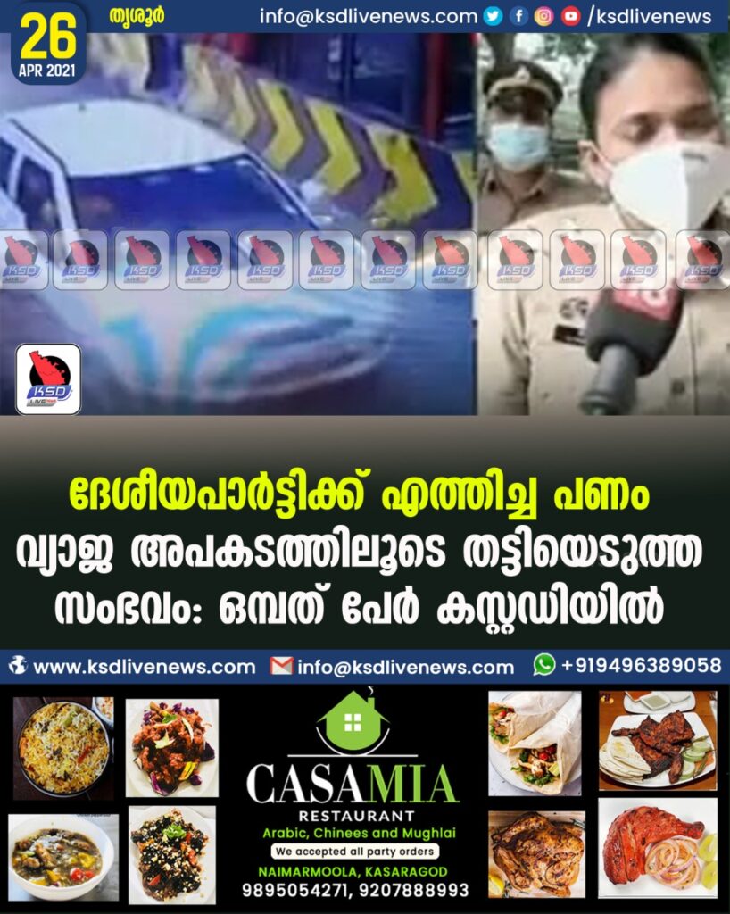 ദേശീയപാര്ട്ടിക്ക് എത്തിച്ച പണം വ്യാജ അപകടത്തിലൂടെ തട്ടിയെടുത്ത സംഭവം: ഒമ്പത് പേര് കസ്റ്റഡിയില്