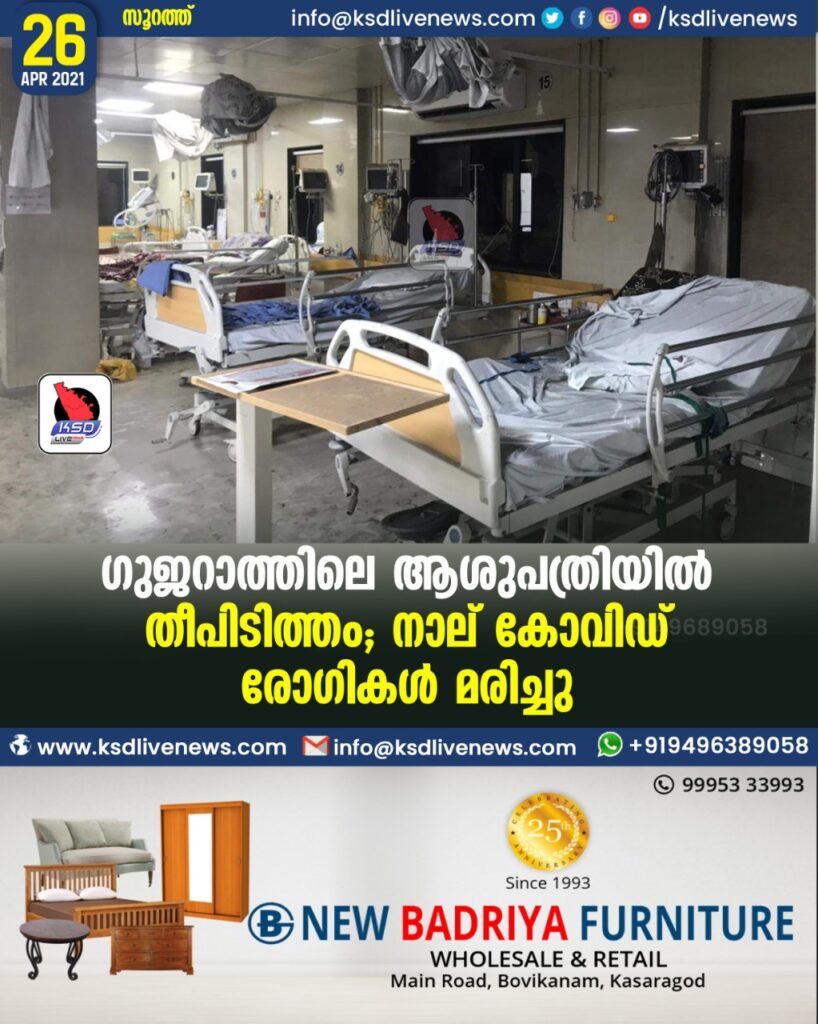 ഗുജറാത്തിലെ ആശുപത്രിയില് തീപിടിത്തം; നാല് കോവിഡ് രോഗികള് മരിച്ചു
