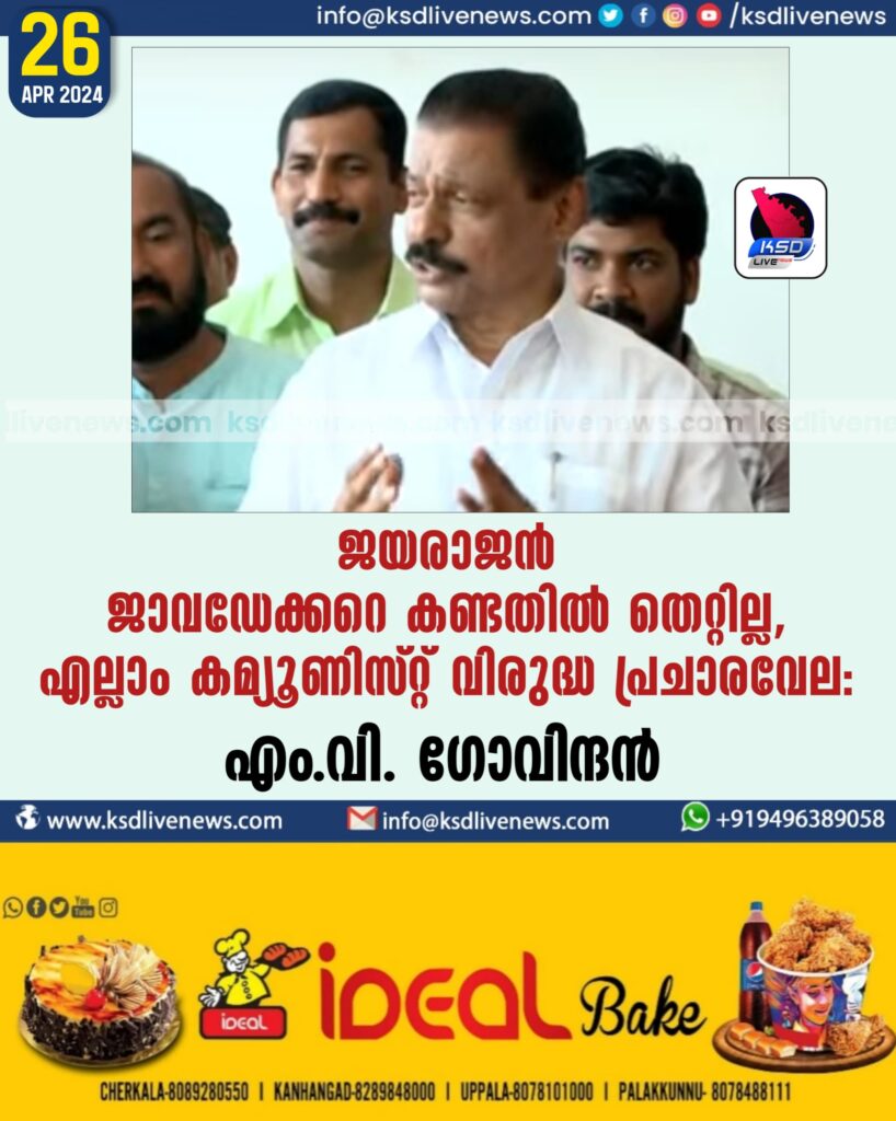 ജയരാജന് ജാവഡേക്കറെ കണ്ടതില് തെറ്റില്ല, എല്ലാം കമ്യൂണിസ്റ്റ് വിരുദ്ധ പ്രചാരവേല: എം.വി. ഗോവിന്ദന്