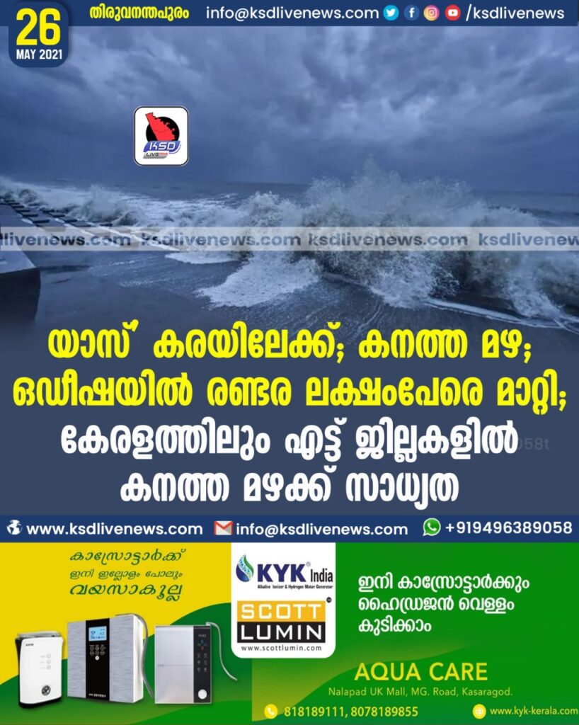 യാസ്’ കരയിലേക്ക്; കനത്ത മഴ; ഒഡീഷയിൽ രണ്ടര ലക്ഷംപേരെ മാറ്റി; കേരളത്തിലും എട്ട് ജില്ലകളിൽ കനത്ത മഴക്ക് സാധ്യത
