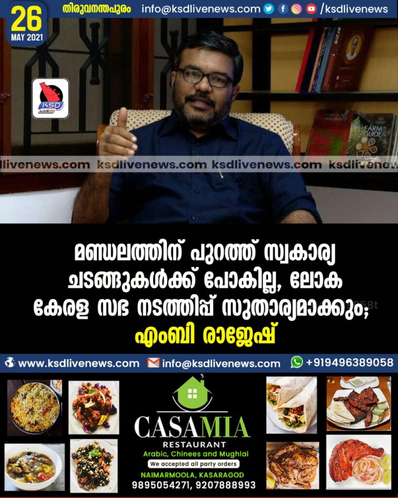 മണ്ഡലത്തിന് പുറത്ത് സ്വകാര്യ ചടങ്ങുകള്ക്ക് പോകില്ല, ലോക കേരള സഭ നടത്തിപ്പ് സുതാര്യമാക്കും: എംബി രാജേഷ്