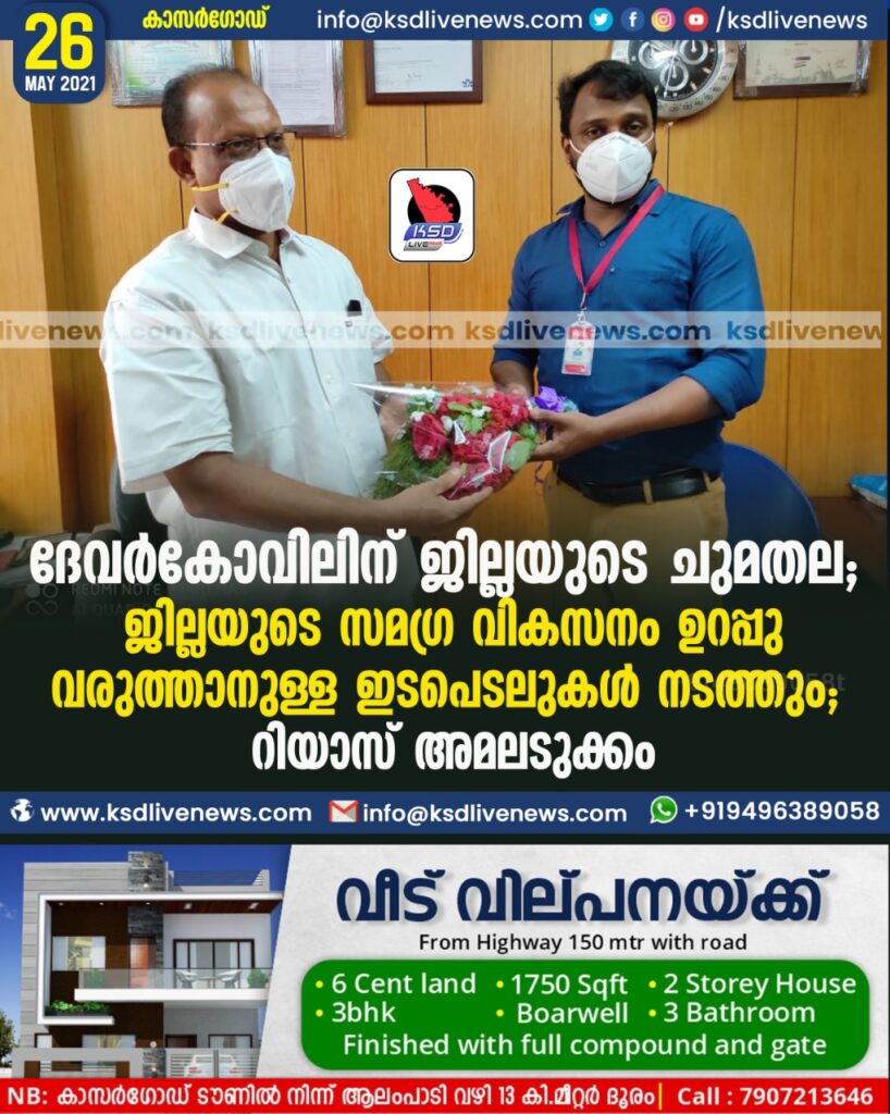 ദേവർകോവിലിന് ജില്ലയുടെ ചുമതല ; ജില്ലയുടെ സമഗ്ര വികസനം ഉറപ്പു വരുത്താനുള്ള ഇടപെടലുകൾ നടത്തും : റിയാസ് അമലടുക്കം