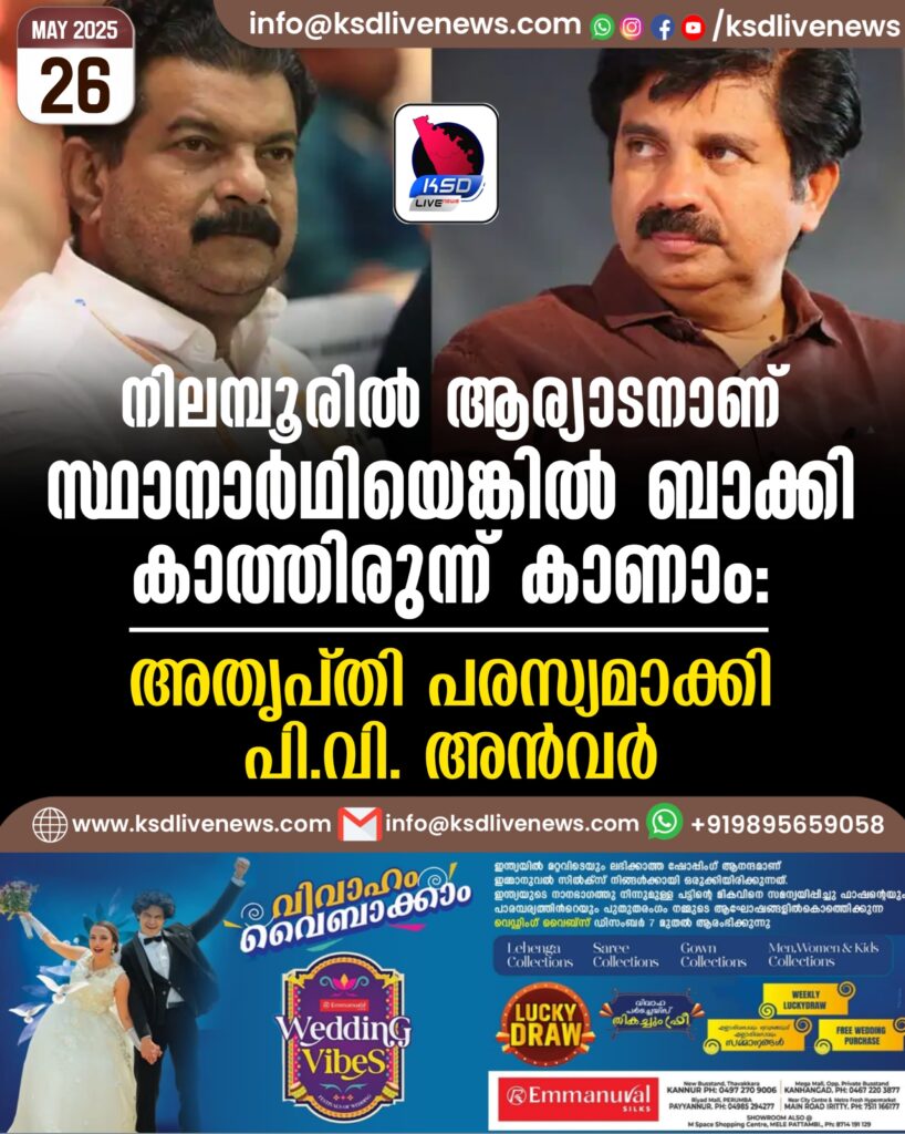 നിലമ്പൂരിൽ ആര്യാടനാണ് സ്ഥാനാർഥിയെങ്കിൽ ബാക്കി കാത്തിരുന്ന് കാണാം: അതൃപ്തി പരസ്യമാക്കി പി.വി. അൻവർ