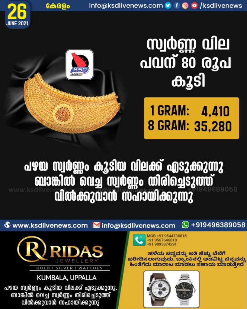 സ്വർണ്ണ വില പവന് 80 രൂപ വർദ്ധിച്ച് 35,280 രൂപയായി