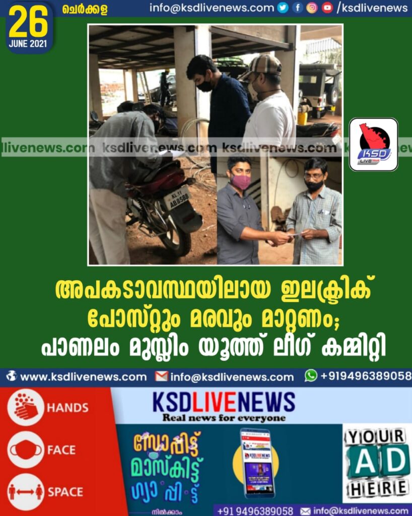 അപകടാവസ്ഥയിലായ ഇലക്ട്രിക് പോസ്റ്റും മരവും മാറ്റണം : പാണലം മുസ്ലിം യൂത്ത് ലീഗ് കമ്മിറ്റി
