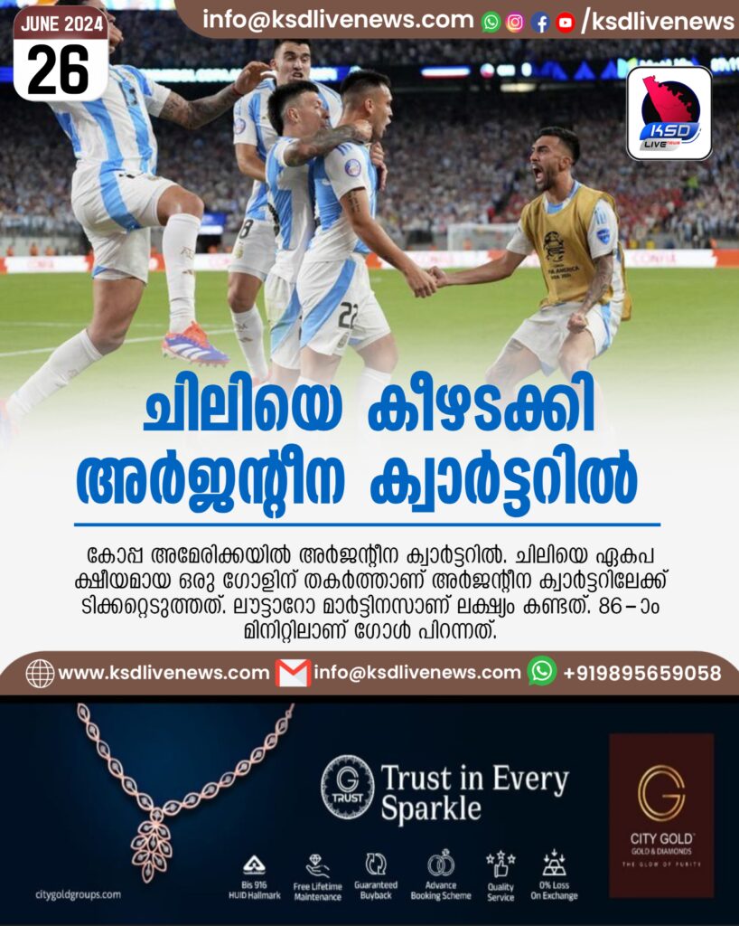 ചിലിയെ കീഴടക്കി അര്ജന്റീന ക്വാര്ട്ടറില്