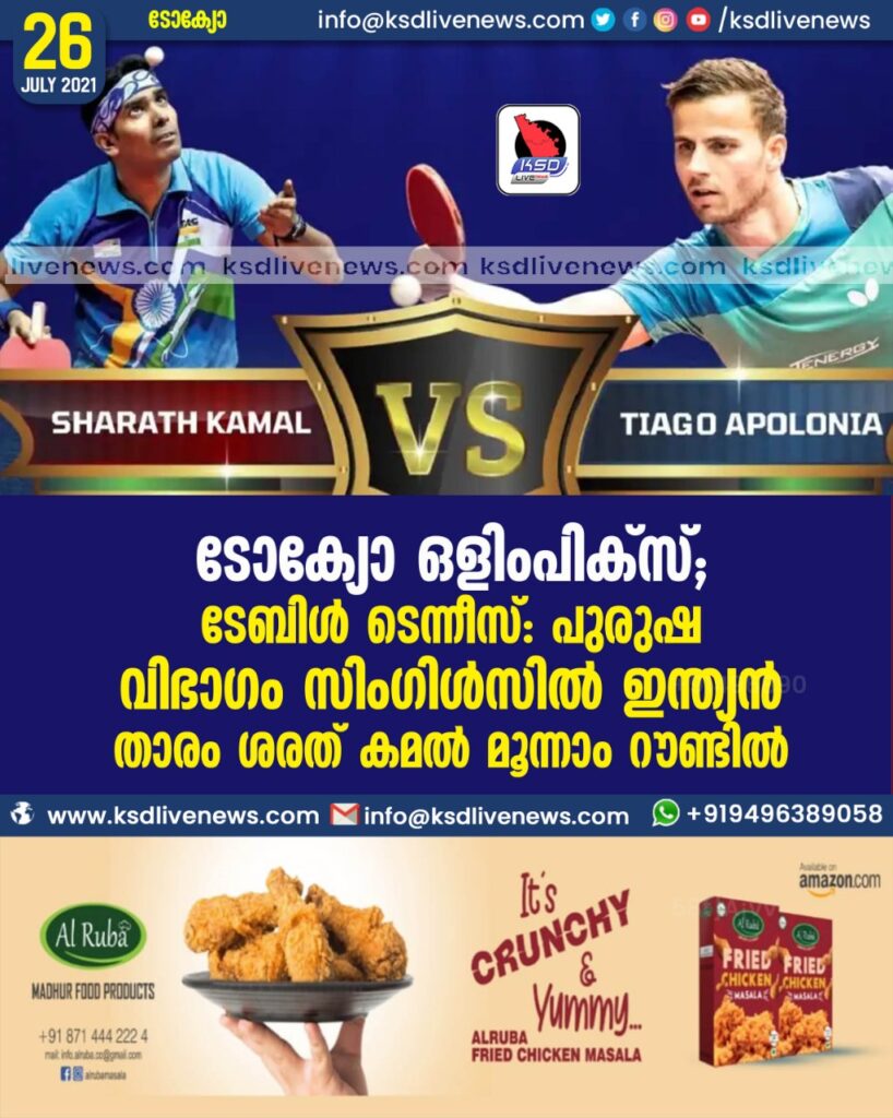 ടേബിള്‍ ടെന്നീസ്: പുരുഷ വിഭാഗം സിംഗിള്‍സില്‍ ഇന്ത്യന്‍ താരം ശരത് കമല്‍ മൂന്നാം റൗണ്ടില്‍