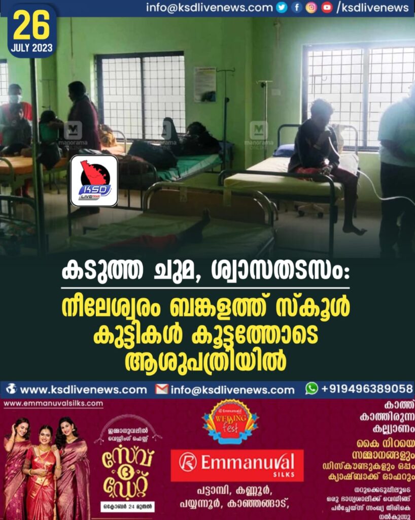 കടുത്ത ചുമ, ശ്വാസതടസം: നീലേശ്വരം ബങ്കളത്ത് സ്കൂൾ കുട്ടികൾ കൂട്ടത്തോടെ ആശുപത്രിയിൽ