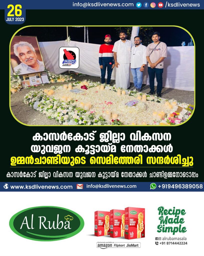 കാസർകോട് ജില്ലാ വികസന യുവജന കൂട്ടായ്മ നേതാക്കൾ ഉമ്മൻചാണ്ടിയുടെ സെമിത്തേരി സന്ദർശിച്ചു