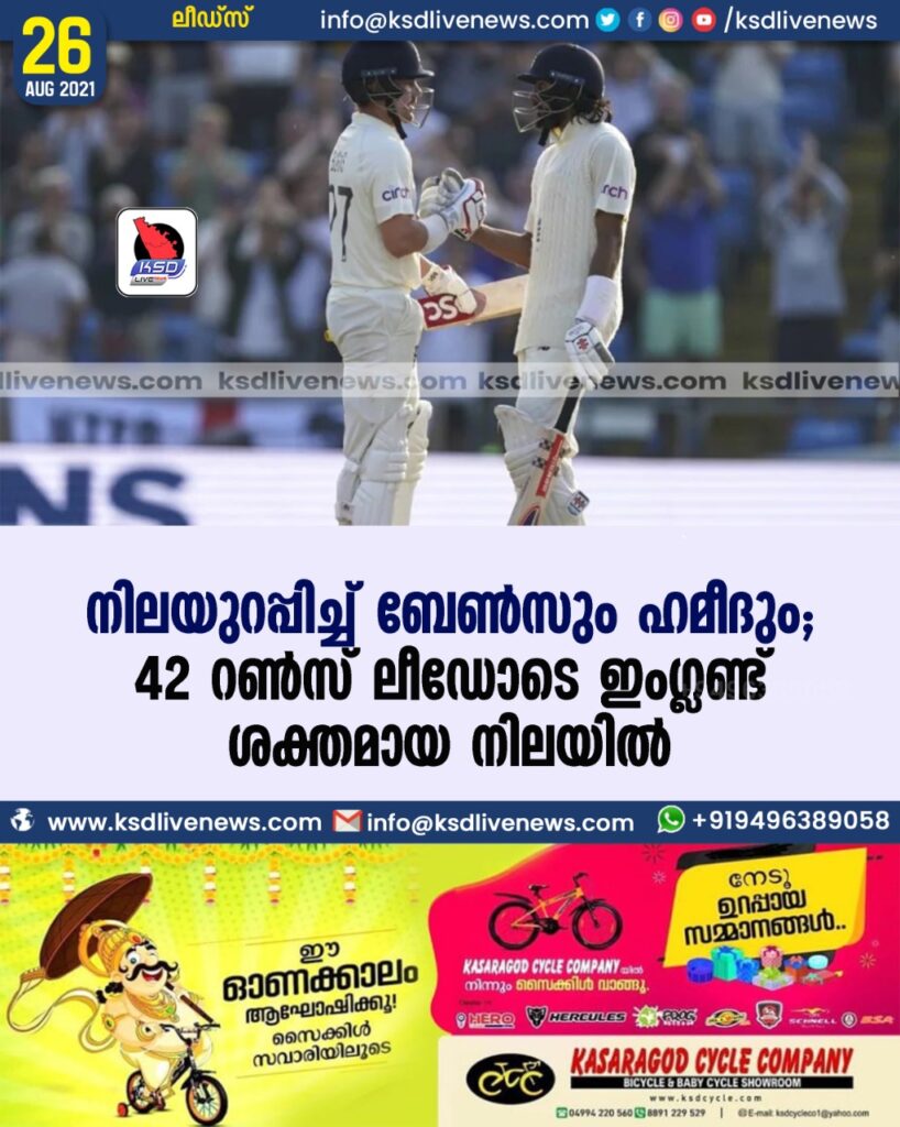 നിലയുറപ്പിച്ച് ബേണ്‍സും ഹമീദും; 42 റണ്‍സ് ലീഡോടെ ഇംഗ്ലണ്ട് ശക്തമായ നിലയില്‍