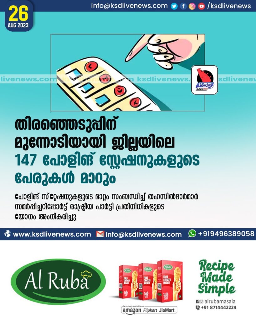 തിരഞ്ഞെടുപ്പിന് മുന്നോടിയായി ജില്ലയിലെ 147 പോളിങ് സ്റ്റേഷനുകളുടെ പേരുകൾ മാറും