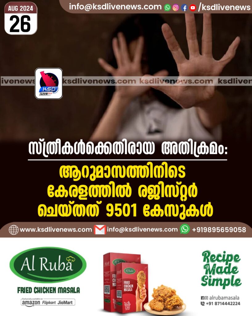 സ്ത്രീകൾക്കെതിരായ അതിക്രമം: ആറുമാസത്തിനിടെ കേരളത്തിൽ രജിസ്റ്റർ ചെയ്തത് 9501 കേസുകൾ