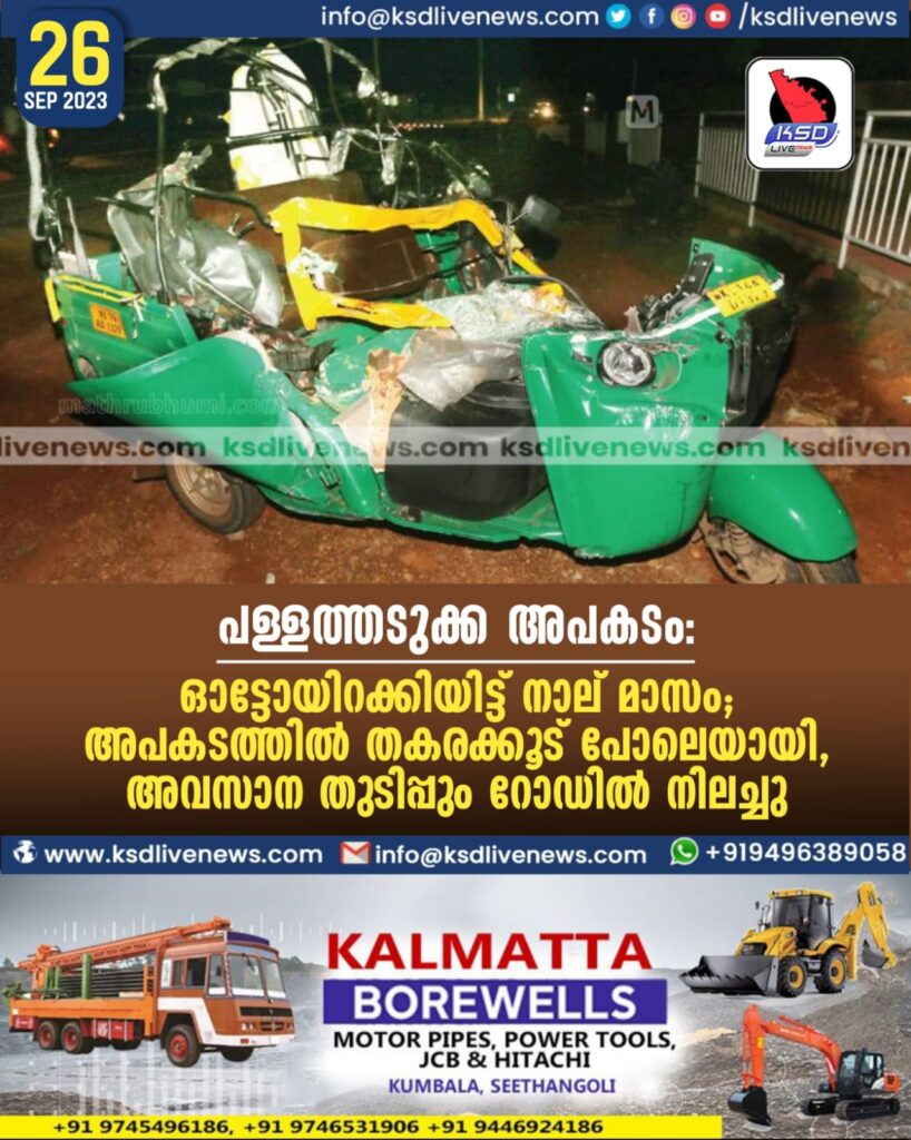 പള്ളത്തടുക്ക അപകടം: ഓട്ടോയിറക്കിയിട്ട് നാല് മാസം;അപകടത്തില് തകരക്കൂട് പോലെയായി,അവസാന തുടിപ്പും റോഡില് നിലച്ചു