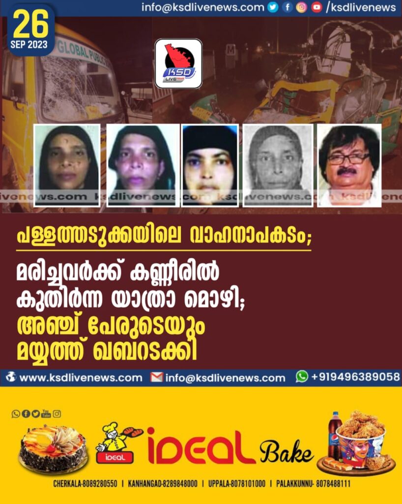 പള്ളത്തടുക്കയിലെ വാഹനാപകടം; മരിച്ചവര്‍ക്ക് കണ്ണീരിൽ കുതിർന്ന യാത്രാ മൊഴി; അഞ്ച് പേരുടെയും മയ്യത്ത് ഖബറടക്കി