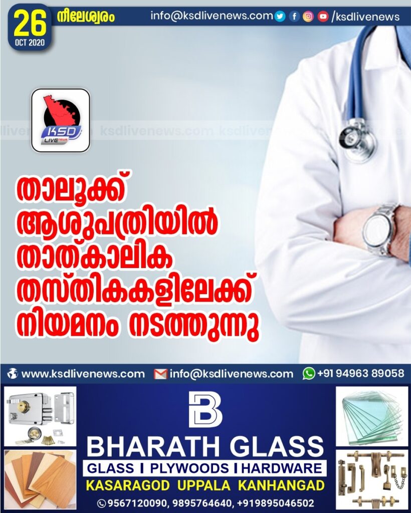 താലൂക്ക് ആശുപത്രിയിൽ താത്കാലിക തസ്തികകളിലേക്ക് നിയമനം നടത്തുന്നു