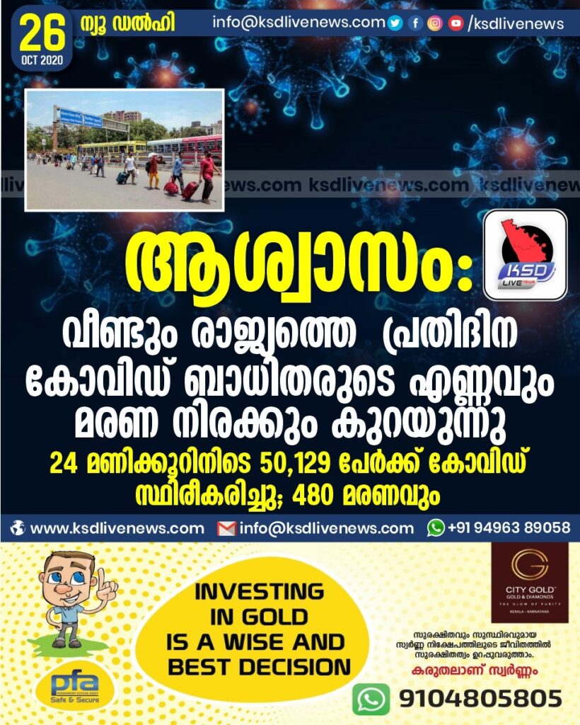 ആശ്വാസം : വീണ്ടും രാജ്യത്തെ പ്രതിദിന കോവിഡ് ബാധിതരുടെ എണ്ണവും മരണ നിരക്കും കുറയുന്നു ;