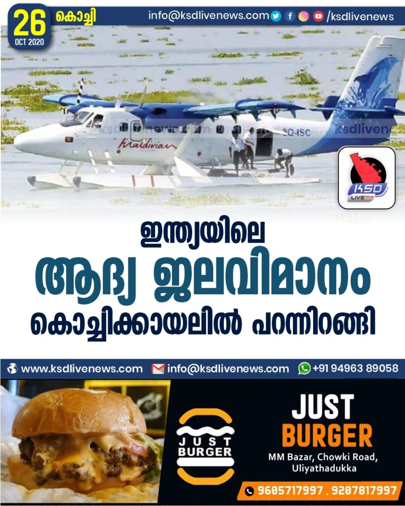 കൊ​ച്ചി: ആ​കാ​ശ​പാ​ത​യി​ല്‍ പ​റ​ന്നെ​ത്തി കൊ​ച്ചി​യി​ലെ ജ​ല​വി​താ​ന​ത്തി​ലേ​ക്ക് ചി​റ​കു​വി​രി​ച്ചി​റ​ങ്ങി ഇ​ന്ത്യ​യി​ലെ ആ​ദ്യ ജ​ല​വി​മാ​നം. മാ​ല​ദ്വീ​പി​ല്‍​നി​ന്ന്​ ഗു​ജ​റാ​ത്തി​ലേ​ക്കു​ള്ള യാ​ത്രാ​മ​ധ്യേ ഇ​ന്ധ​നം നി​റ​ക്കാ​നാ​യി​രു​ന്നു വെ​ണ്ടു​രു​ത്തി പാ​ല​ത്തി​ന് സ​മീ​പം കൊ​ച്ചി​ക്കാ​യ​ലി​ല്‍ ജ​ല​വി​മാ​നം ഇ​റ​ങ്ങി​യ​ത്. ഒ​ന്നേ കാ​ലോ​ടെ ലാ​ന്‍​ഡ് െച​യ്ത് കാ​യ​ലി​ലൂ​ടെ മു​ന്നോ​ട്ടു​നീ​ങ്ങി​യ സീ ​പ്ലെ​യി​ന്‍ ദ​ക്ഷി​ണ നാ​വി​ക​സേ​ന കേ​ന്ദ്ര​ത്തി​ല്‍​നി​ന്നു​മാ​ണ് ഇ​ന്ധ​നം നി​റ​ച്ച​ത്.