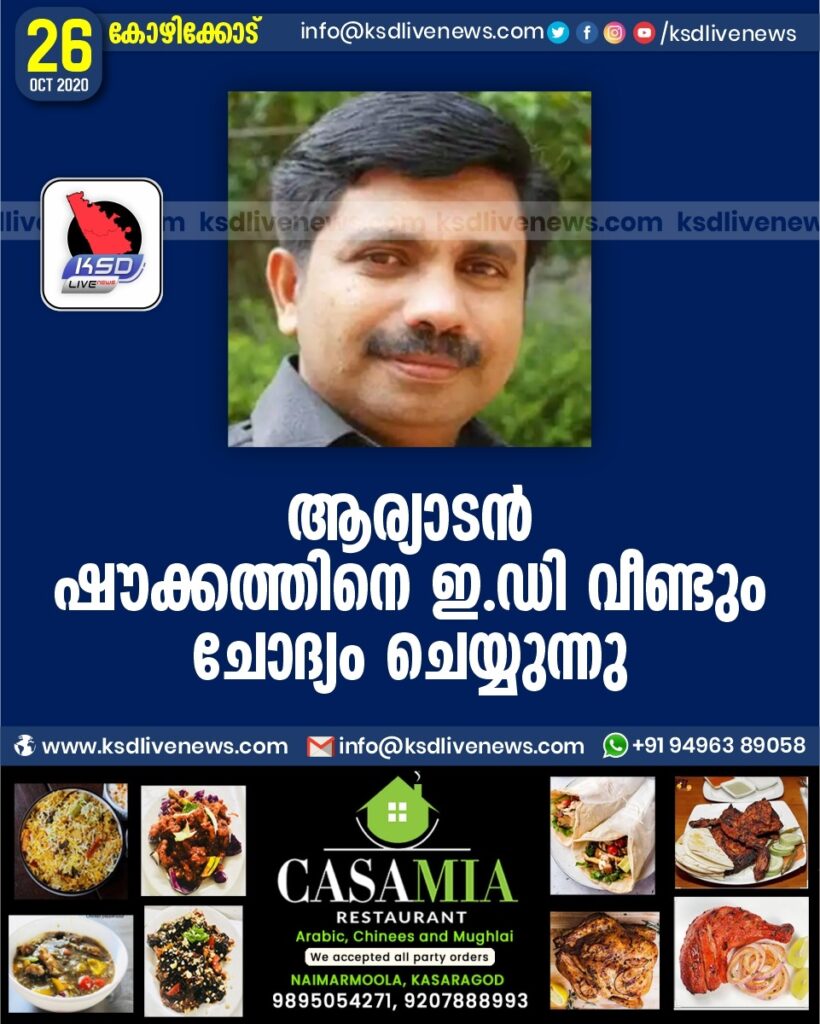 ആര്യാടൻ ഷൗക്കത്തിനെ ഇ.ഡി വീണ്ടും ചോദ്യം ചെയ്യുന്നു