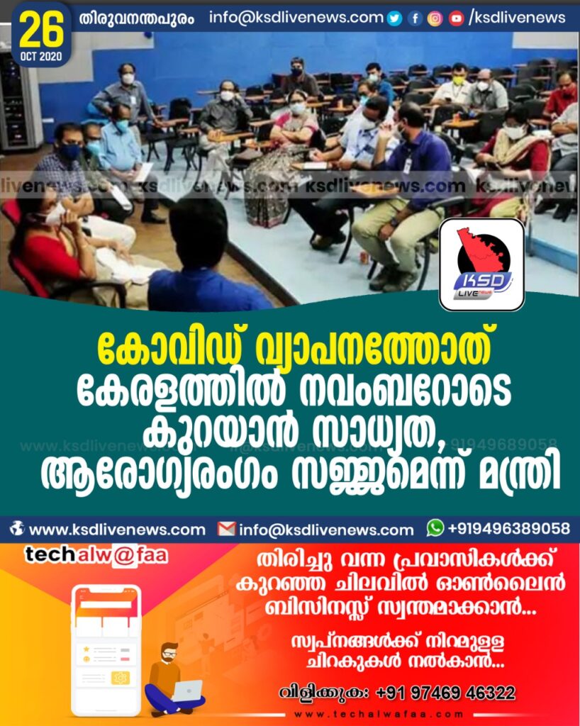 കോവിഡ് വ്യാപനത്തോത് കേരളത്തില് നവംബറോടെ കുറയാന് സാധ്യത, ആരോഗ്യരംഗം സജ്ജമെന്ന് മന്ത്രി