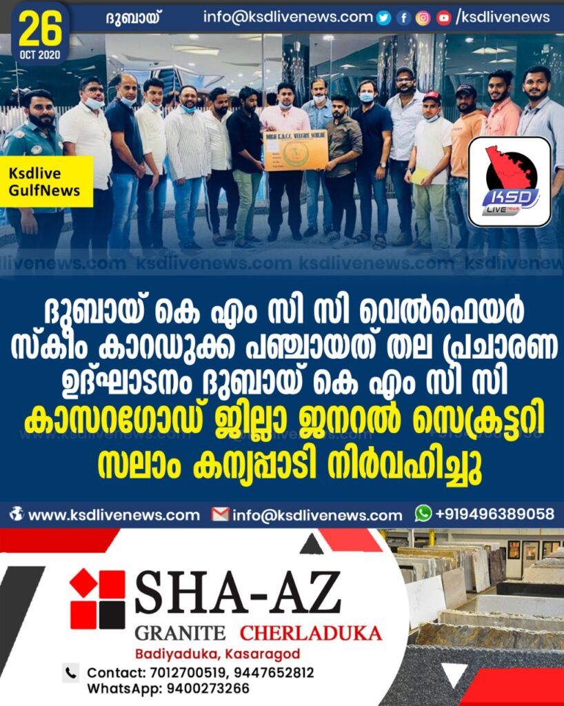 ദുബായ് കെ എം സി സി വെൽഫെയർ സ്കീം കാറഡുക്ക പഞ്ചായത് തല പ്രചാരണ ഉദ്ഗാടനം ദുബായ് കെ എം സി സി കാസറഗോഡ് ജില്ലാ ജനറൽ സെക്രട്ടറി സലാം കന്യപ്പാടി നിർവഹിച്ചു