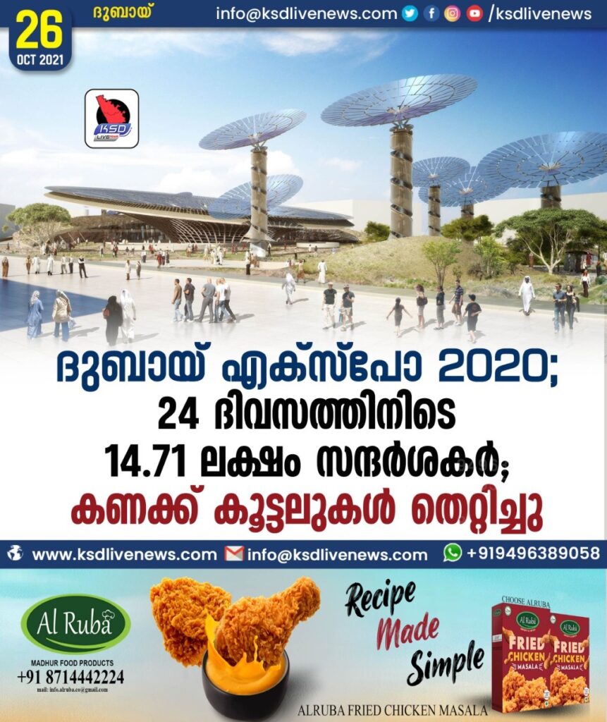 ദുബായ് എക്സ്പോ 2020; 24 ദിവസത്തിനിടെ 14.71 ലക്ഷം സന്ദർശകർ, കണക്ക് കൂട്ടലുകൾ തെറ്റിച്ചു