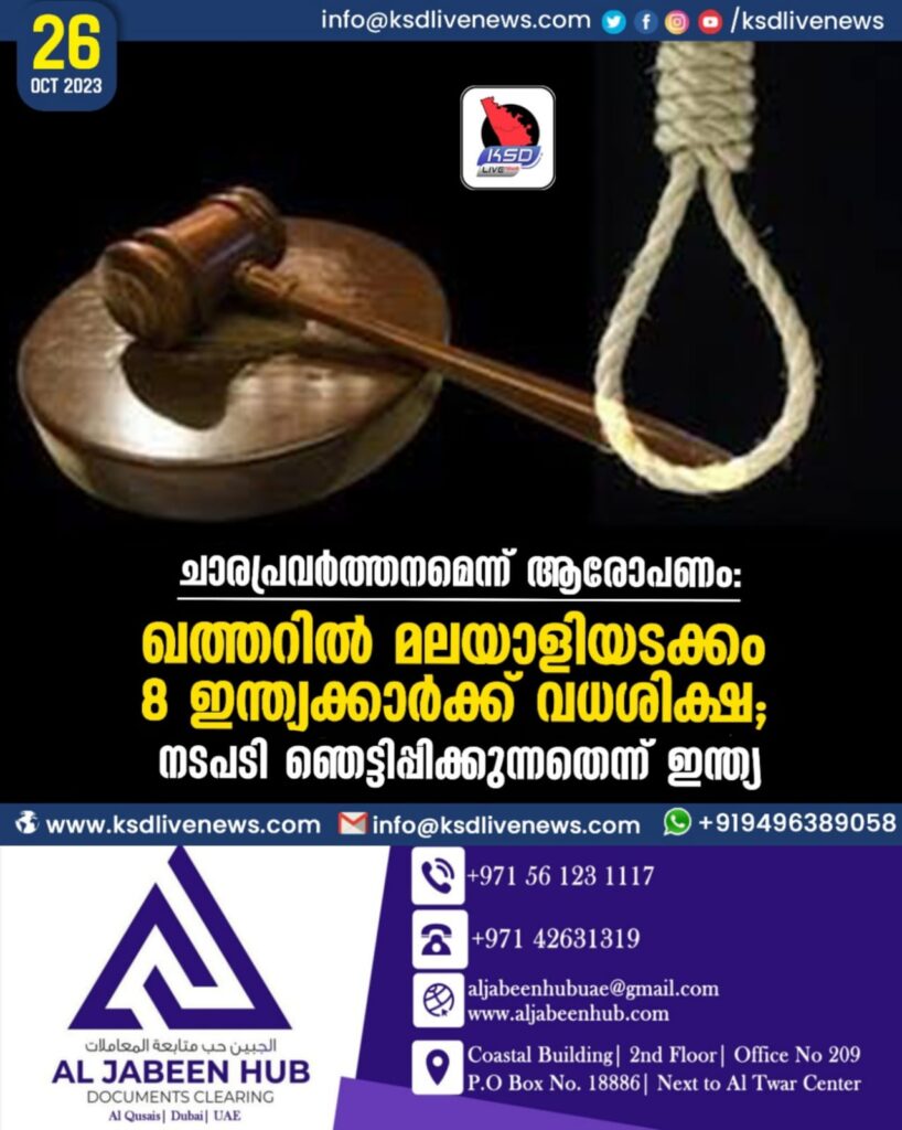 ചാരപ്രവർത്തനമെന്ന് ആരോപണം: ഖത്തറിൽ മലയാളിയടക്കം 8 ഇന്ത്യക്കാർക്ക് വധശിക്ഷ; നടപടി ഞെട്ടിപ്പിക്കുന്നതെന്ന് ഇന്ത്യ