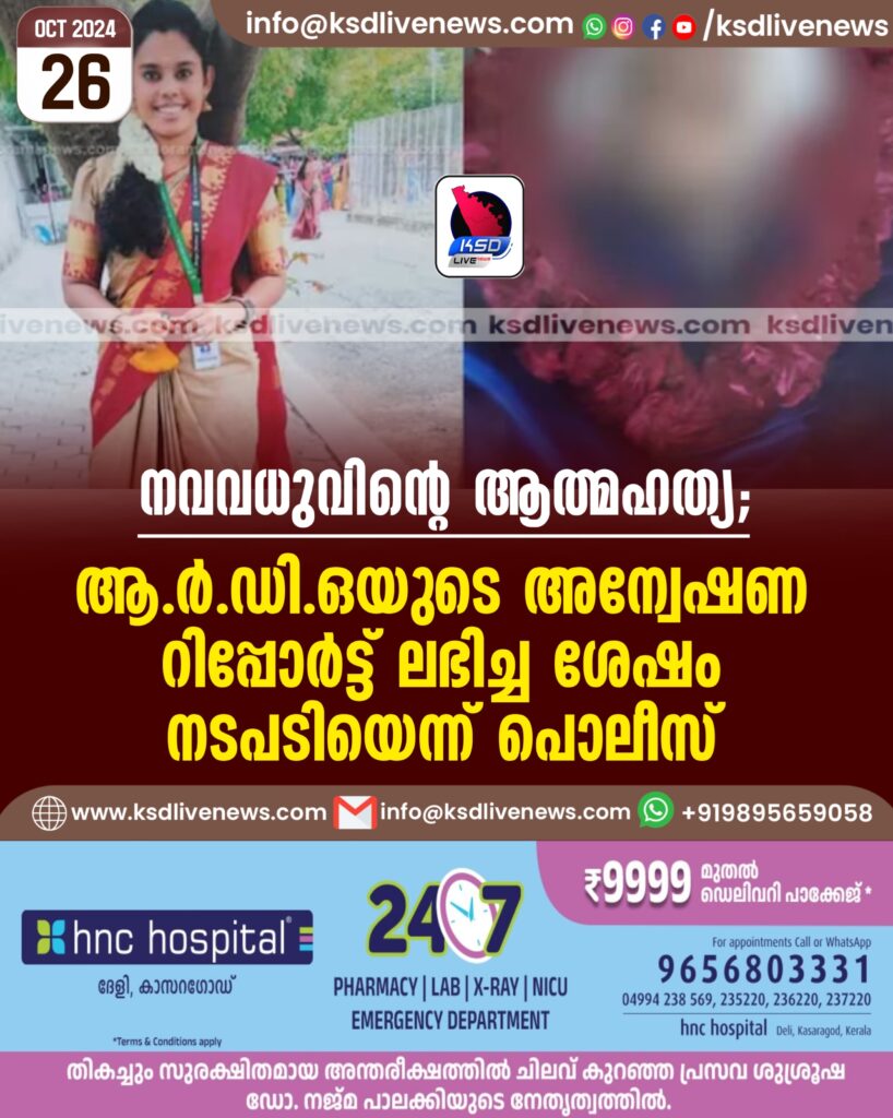 നവവധുവിന്റെ ആത്മഹത്യ; ആർഡിഒയുടെ അന്വേഷണ റിപ്പോർട്ട് ലഭിച്ച ശേഷം നടപടിയെന്ന് പൊലീസ്