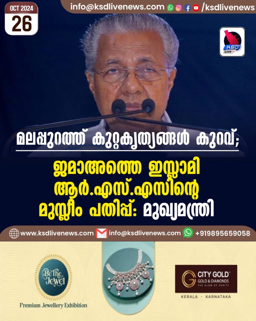മലപ്പുറത്ത് കുറ്റകൃത്യങ്ങള്‍ കുറവ്; ജമാഅത്തെ ഇസ്ലാമി ആര്‍എസ്എസിന്റെ മുസ്ലീം പതിപ്പ്- മുഖ്യമന്ത്രി